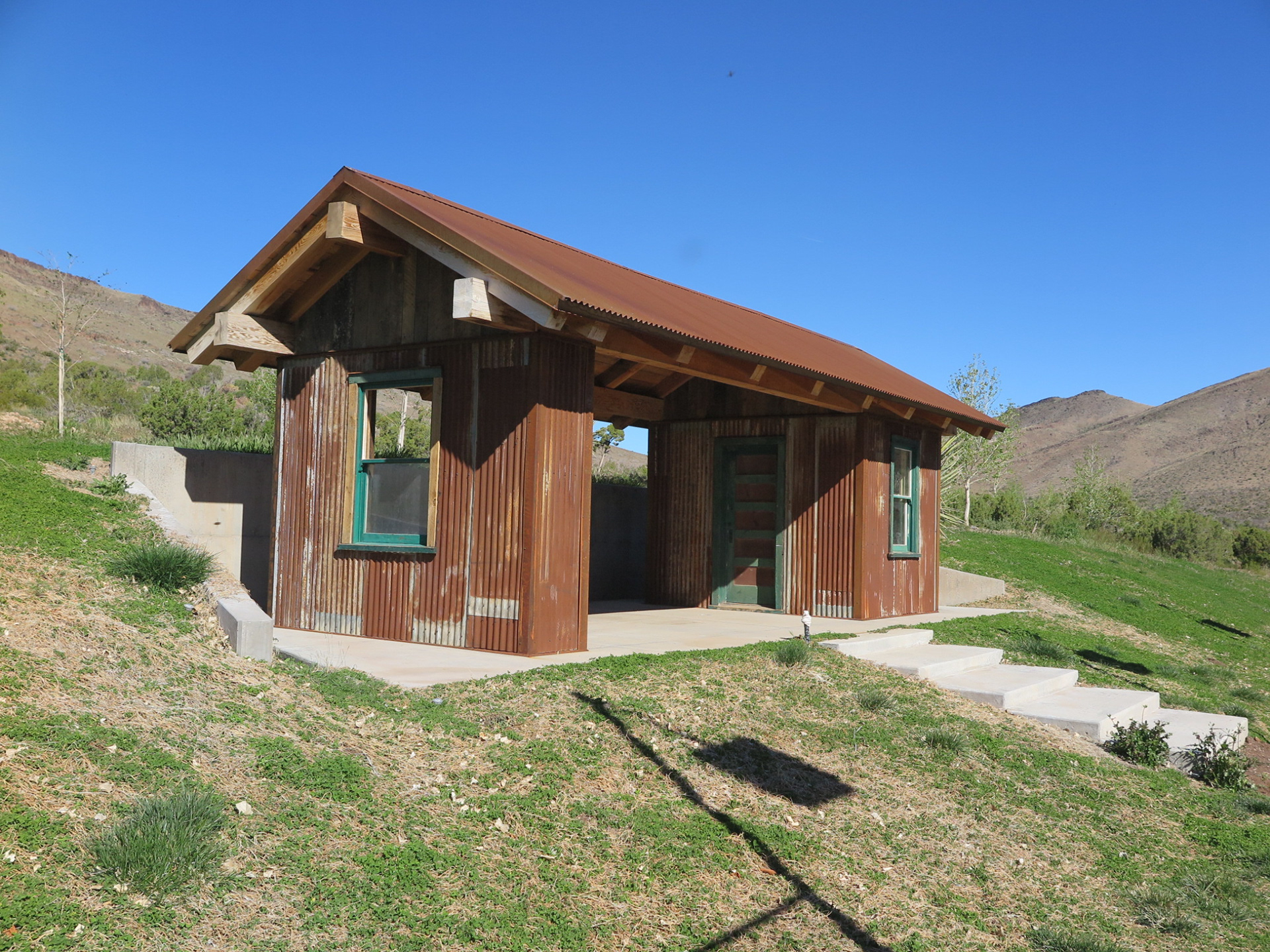 Tennis Viewing Stand, reclaim metal roofing, Doors and Windows from Historic Garage Remodel